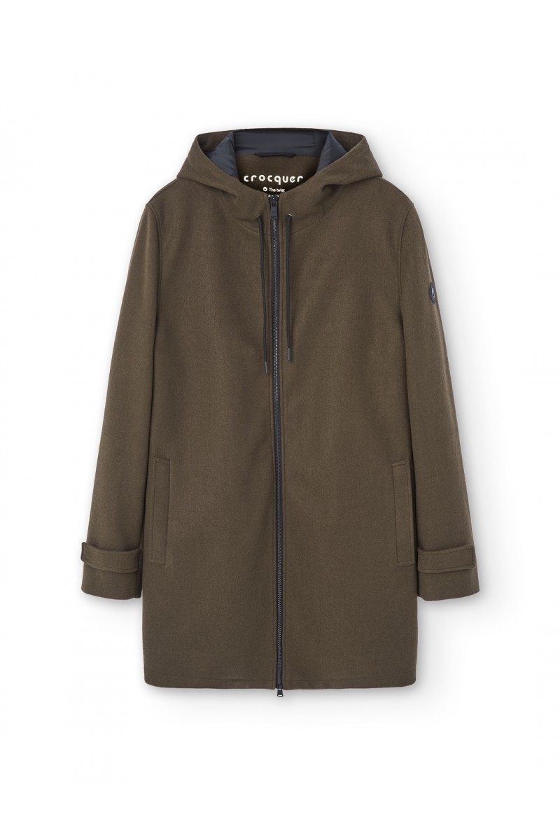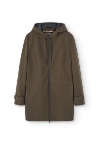 Quilted cloth parka with hood and zipper