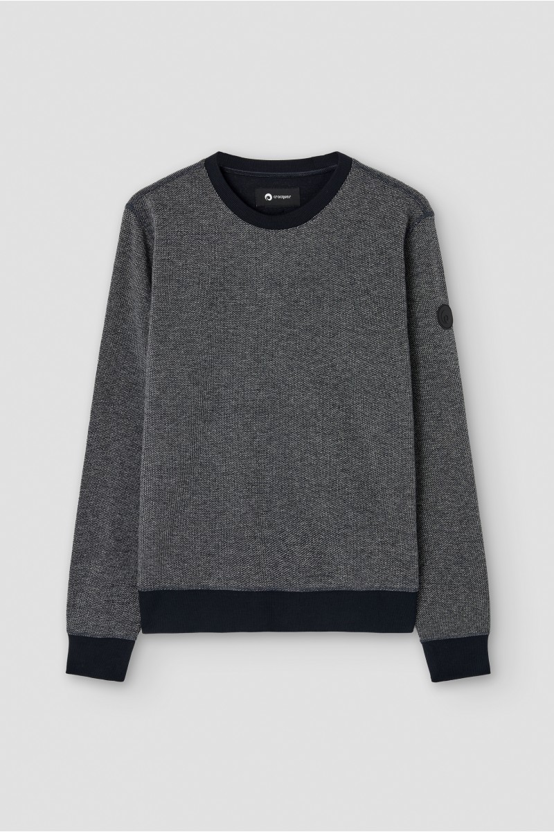 Two-tone textured round neck sweater
