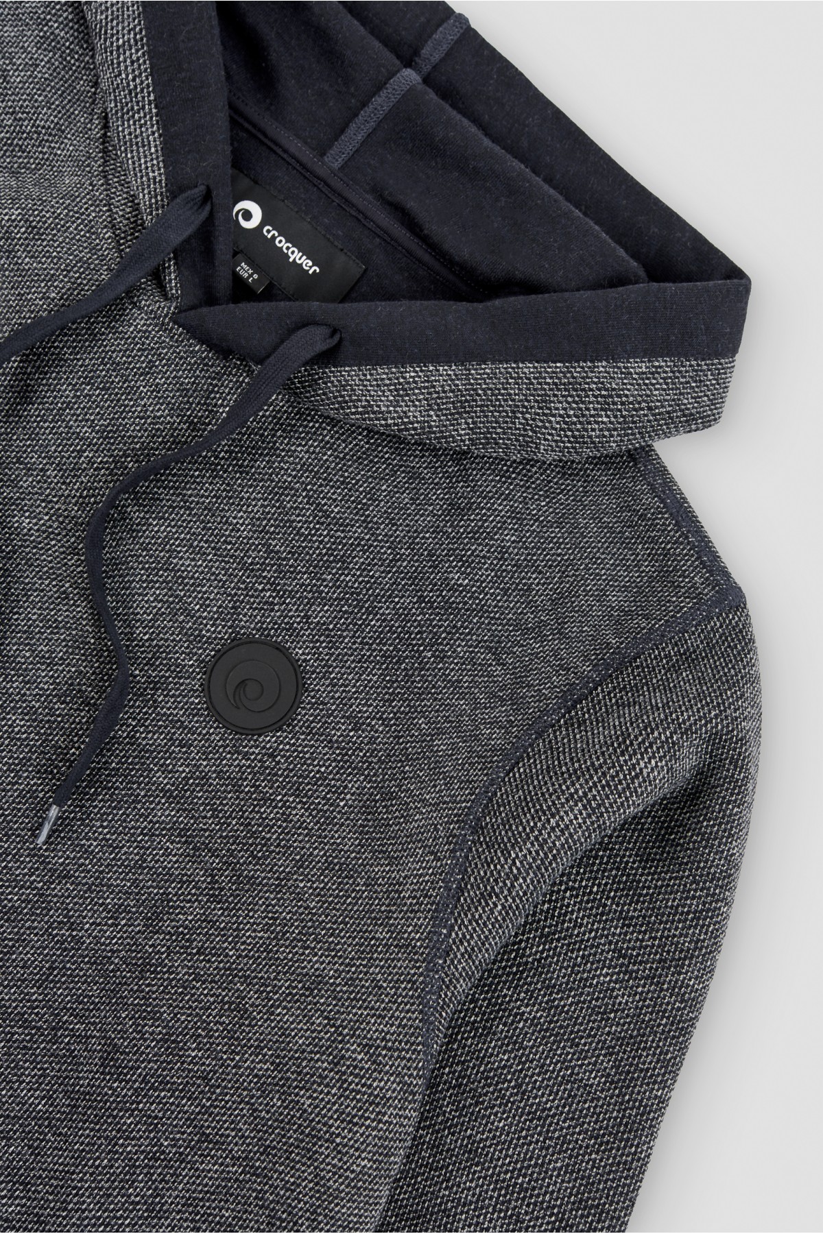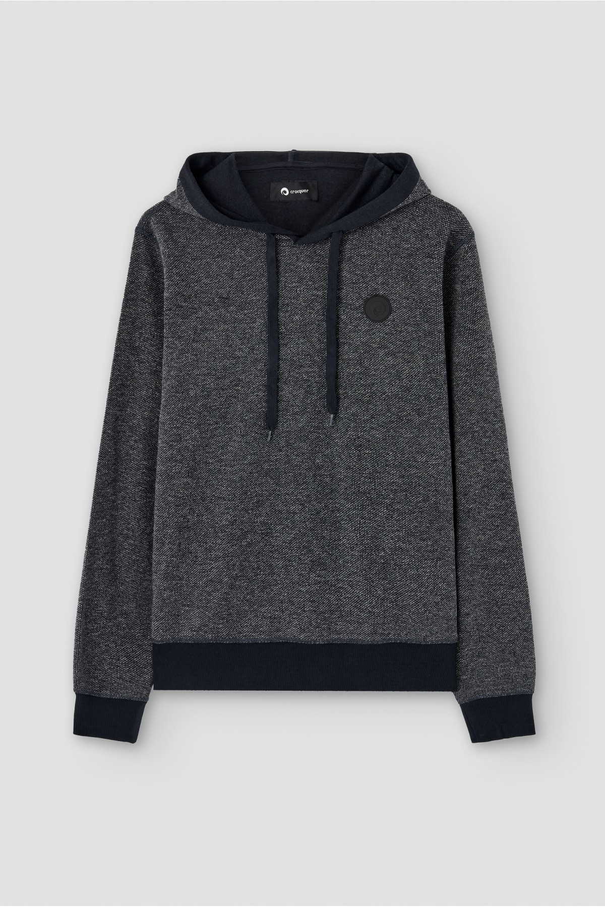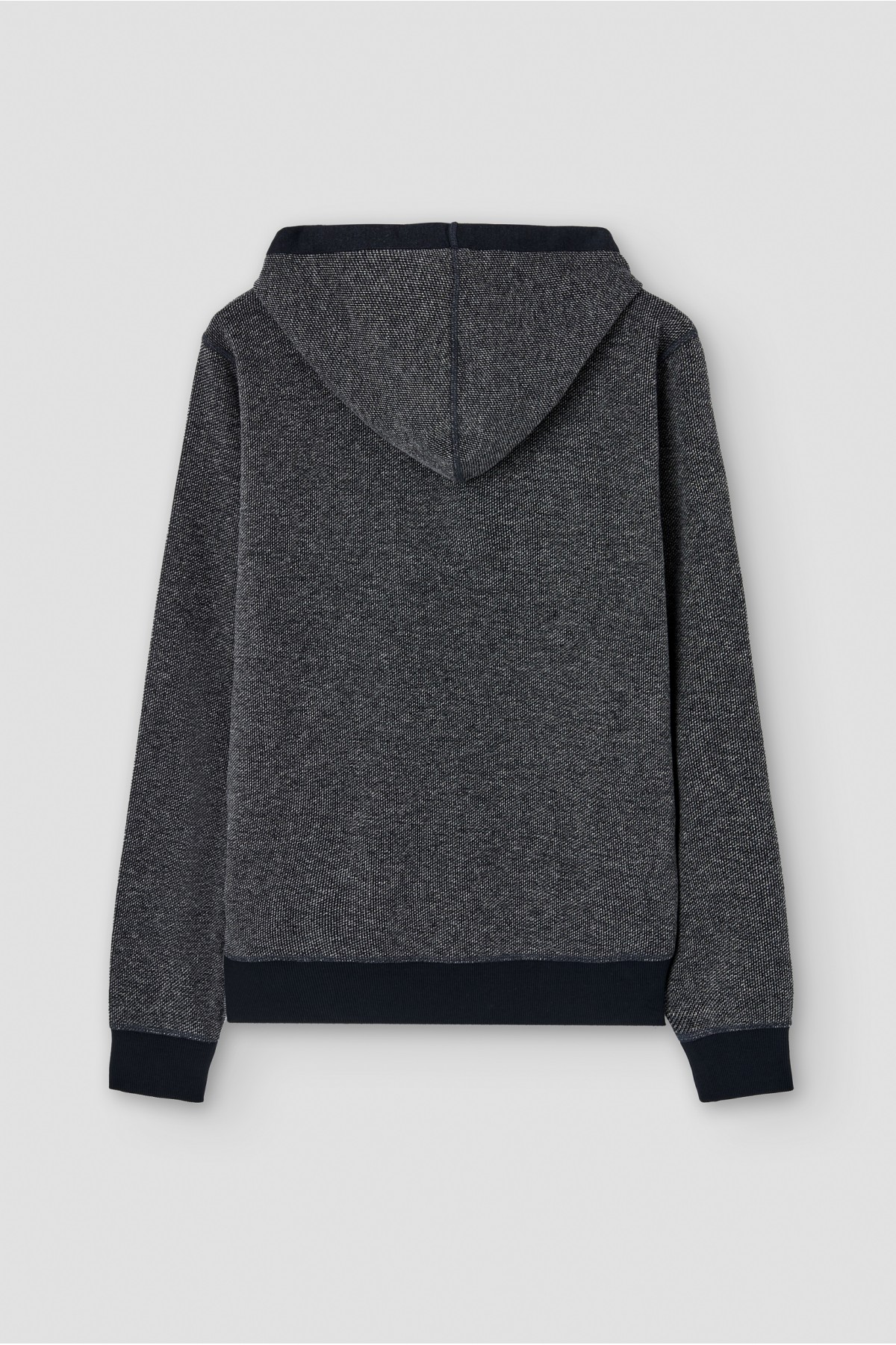Two-tone textured round neck sweater with hood
