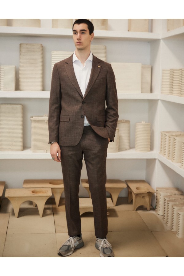 Traje tropical superfino alta calidad mezcla marrón - New reg fit