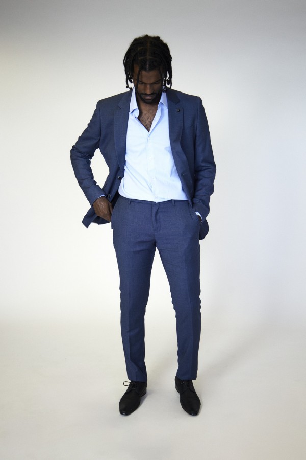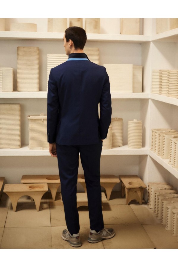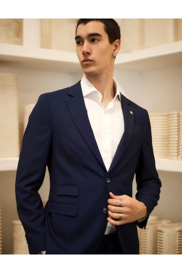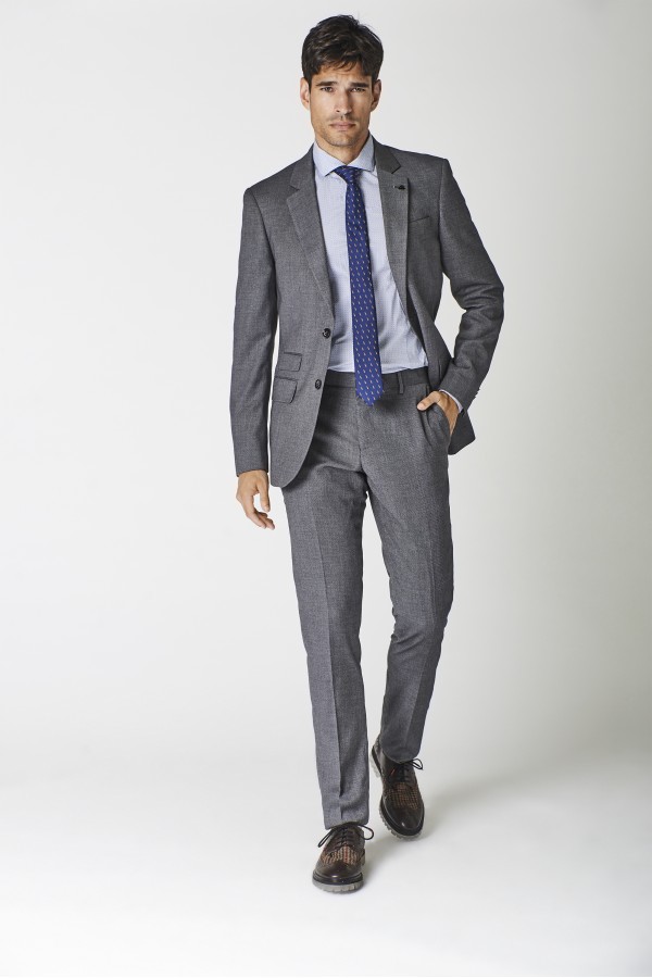 Traje micro-espiga tejida sobre popelín - New regular fit