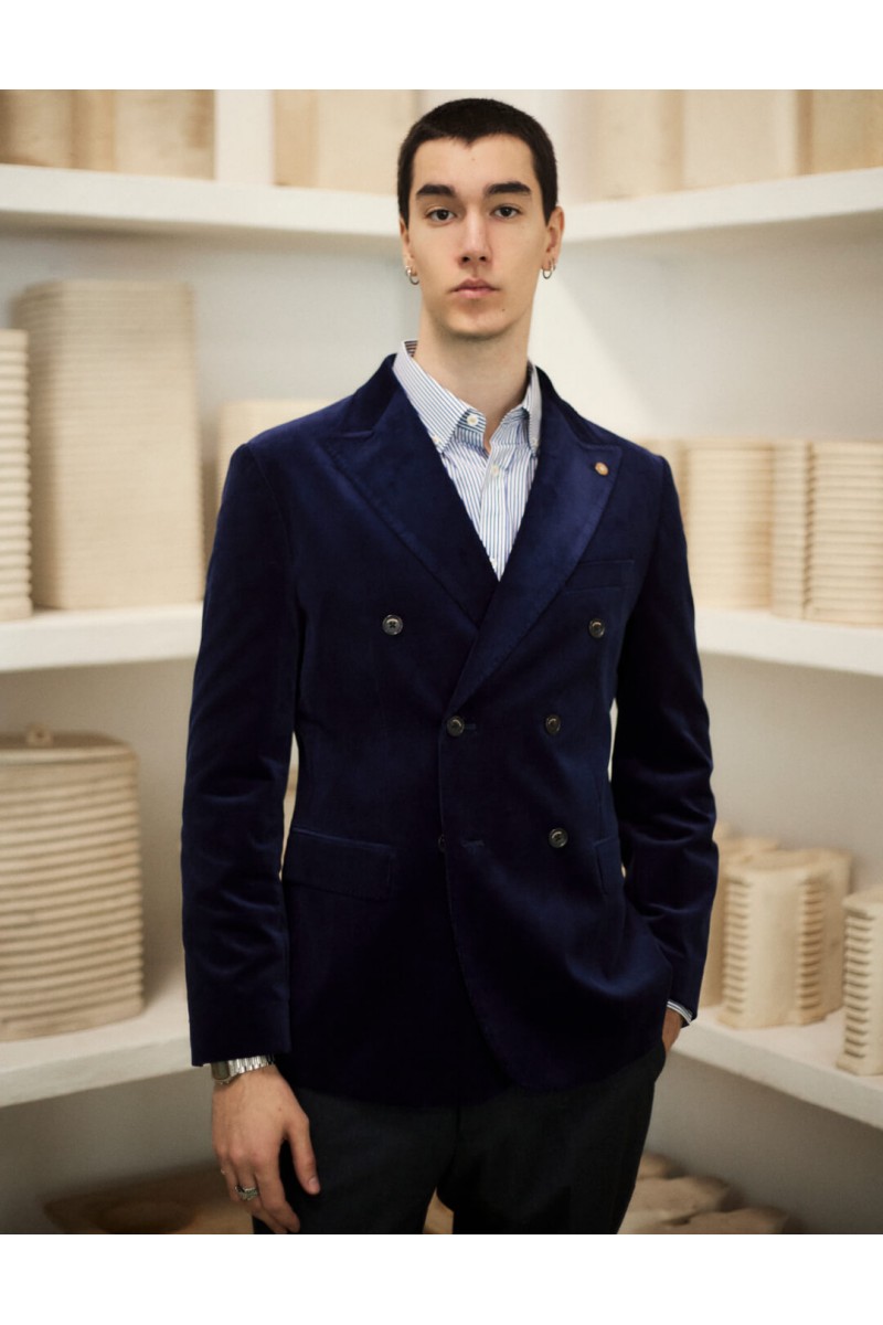 Chaqueta cruzada pana de algodón solapa punta de lanza