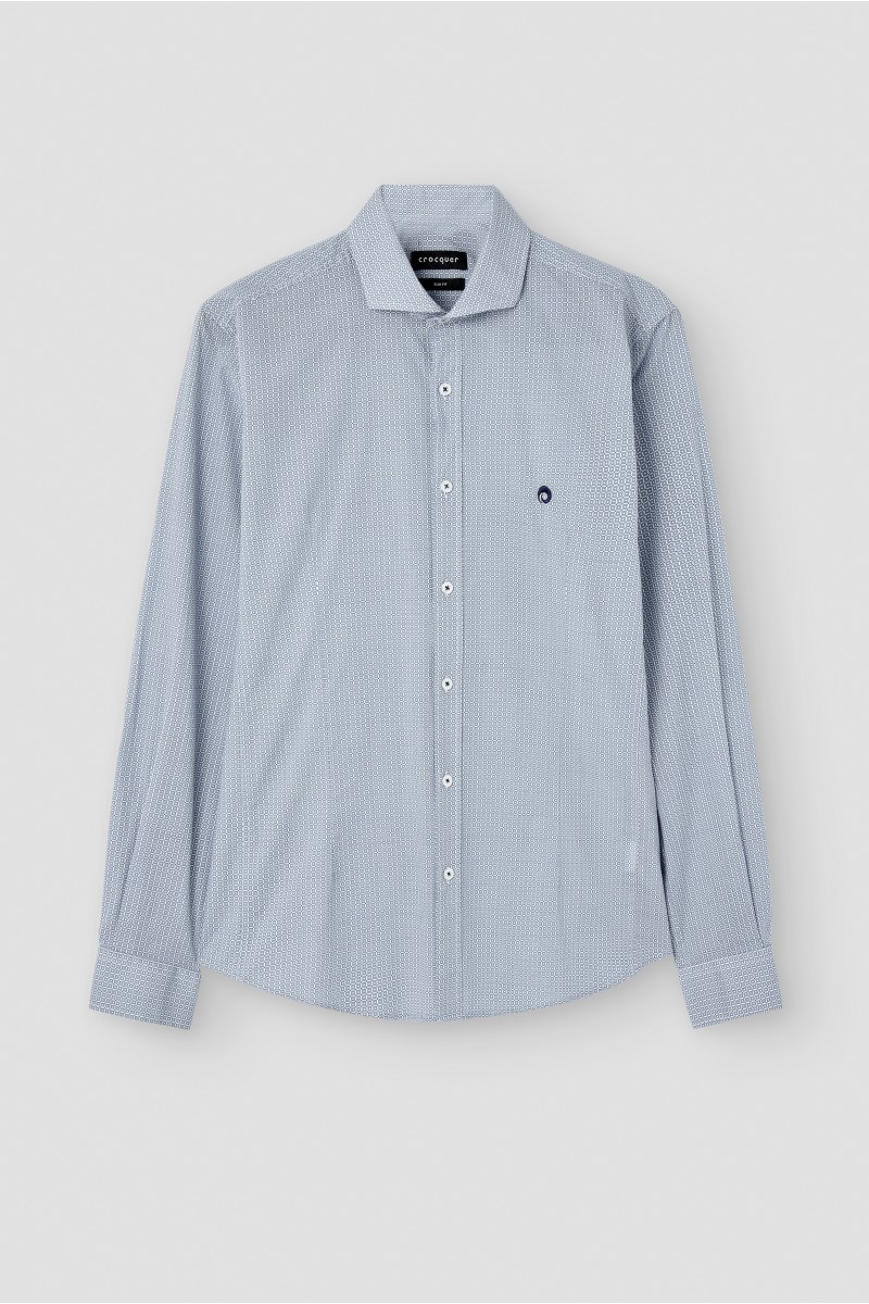 Camisa estampada cuello italiano slim fit