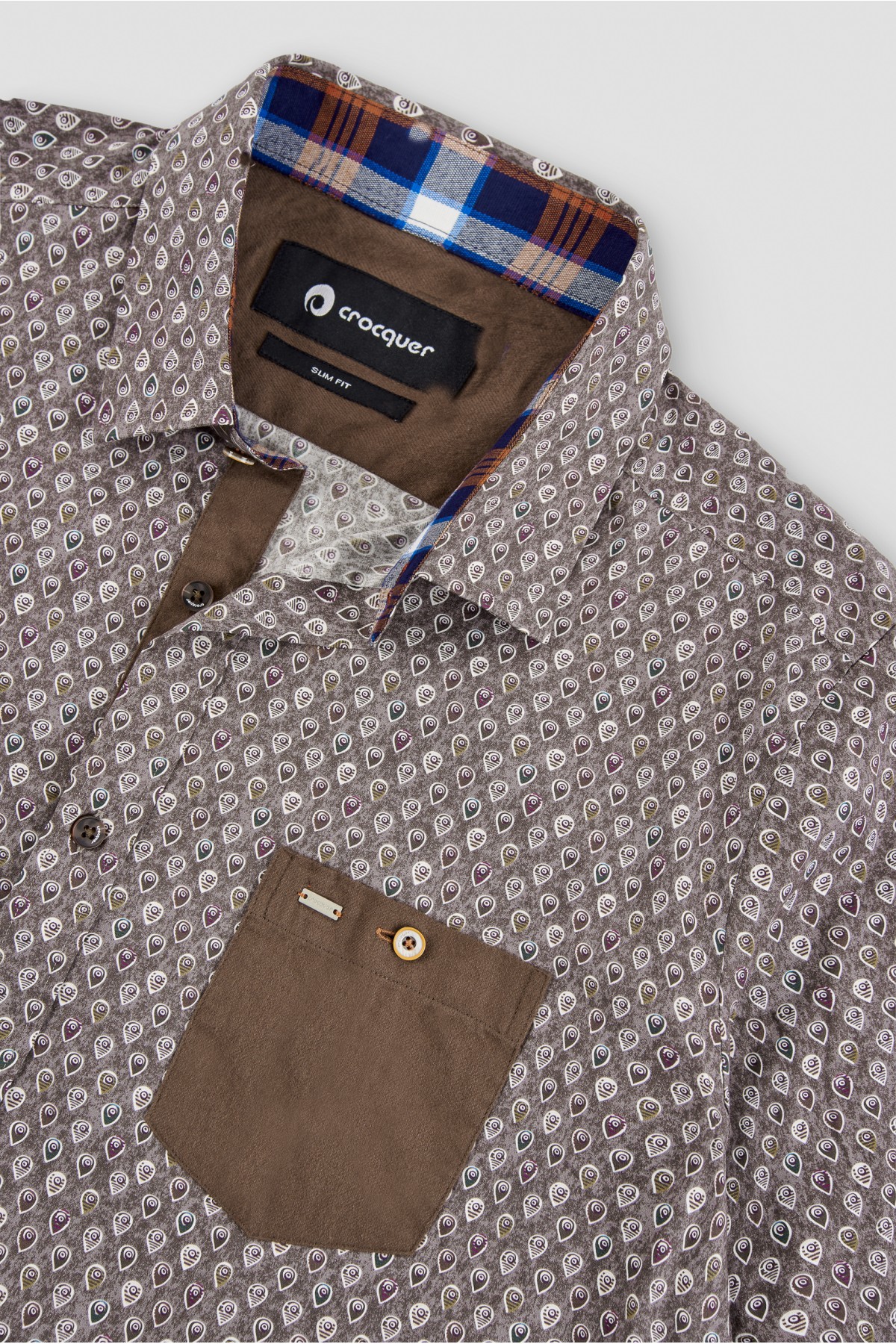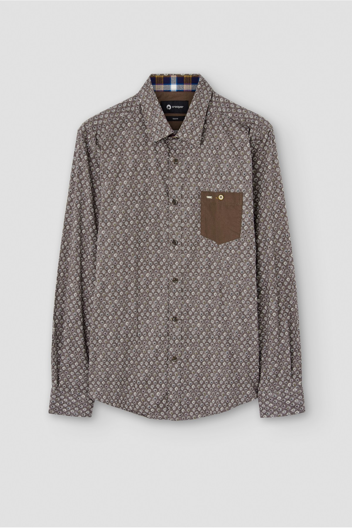 Camisa estampada bolsillos a contraste